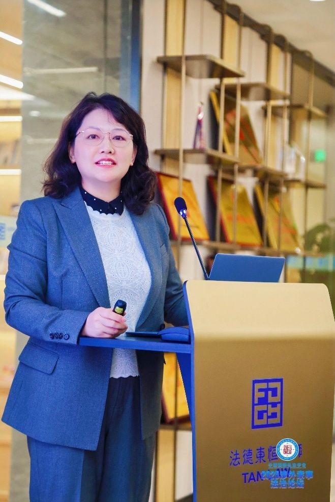 为促进学术交流,研讨会设置了专题演讲环节,与会者围绕跨境家事纠纷的热点难点展开了深度分享与热烈探讨。广东信达律师事务所高级合伙人戴维律师作为受邀嘉宾,在“第五单元 涉外继承”环节发表专题演讲。她以典型跨境继承案例为切入点,系统剖析了涉外遗嘱继承中的法律适用难点,其深入的专业见解与敏锐的实践洞察力赢得了与会嘉宾的一致好评。